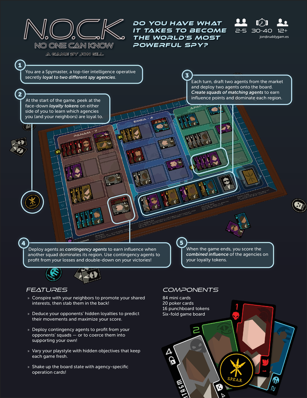 Components with a front and back side such as tiles, cards, chips, tokens, etc. may allow some players to look at information other players don't have access to. If a prototype involves different players at the table having access to different information, it qualifies for this Bingo square.